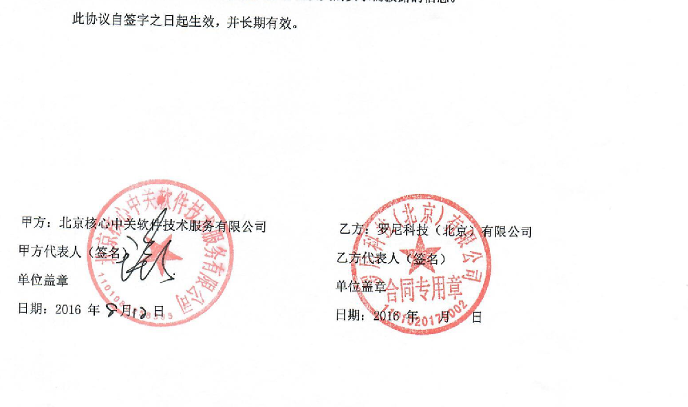 服务北京核心中关村软件技术服务有限公司